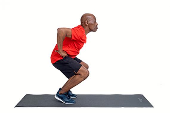 Start with your legs apart; bend both legs slowly until your thighs are horizontal. Rest your weight on your heels properly and tilt your trunk forward slightly.